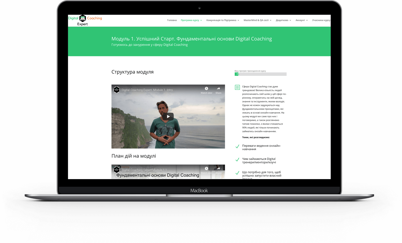 Вітаю з успішною реєстрацією на участь в онлайн-курсі Digital Coaching Expert. Вам відкрито Модуль І, на котрому ми зануримось у нішу Digital Coaching і Ви дізнаєтесь як та з чого потрібно починати, щоб в кінцевому результаті успішно запустити власну навчальну програму.